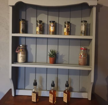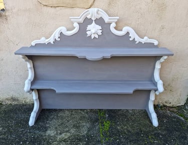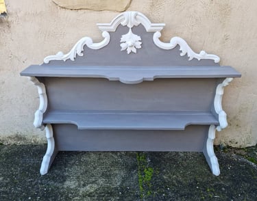 Haut de buffet Saint-Hubert, peint en deux teintes, blanche et gris crée à la caséine