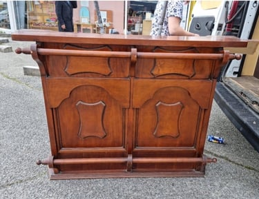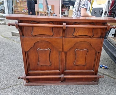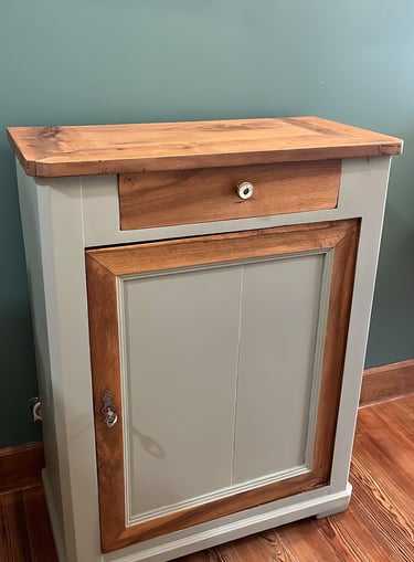 Bar peint en deux teinte, crème et beige, le dessus a été vernis en ton naturel