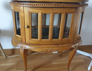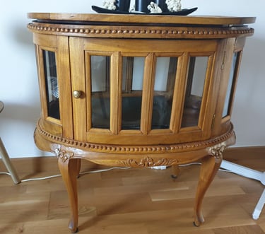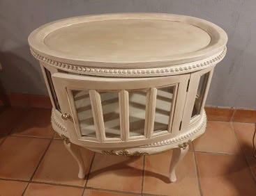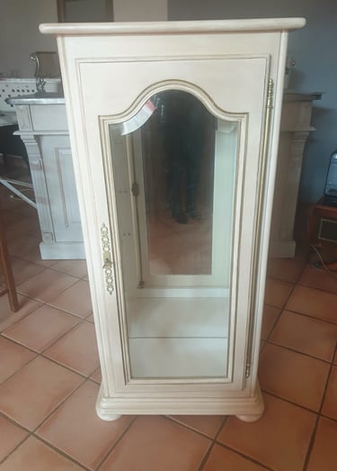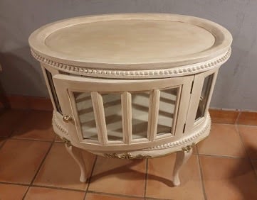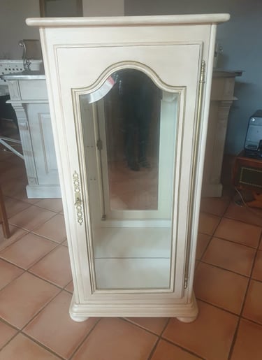 Meuble vitrine ton ombre naturelle et dorure en réchampis