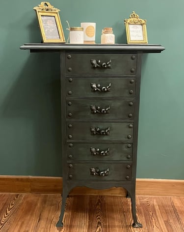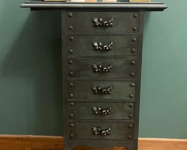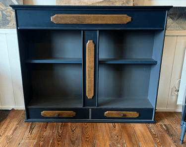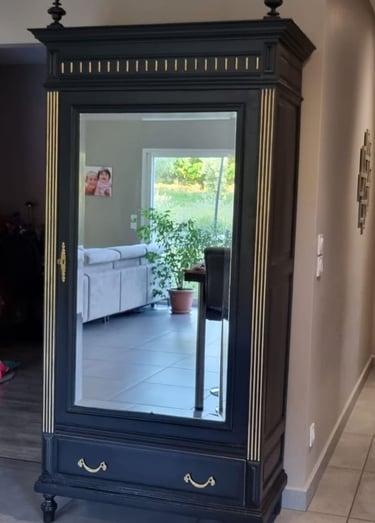 Armoire peinte en noire mate et dorée à la bronzante, un pied cassé a été crée par l'un de mes collègues tourneur sur bois