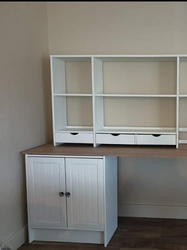 bibliothèque et meuble de bureau en pin peint en blanc Aspen