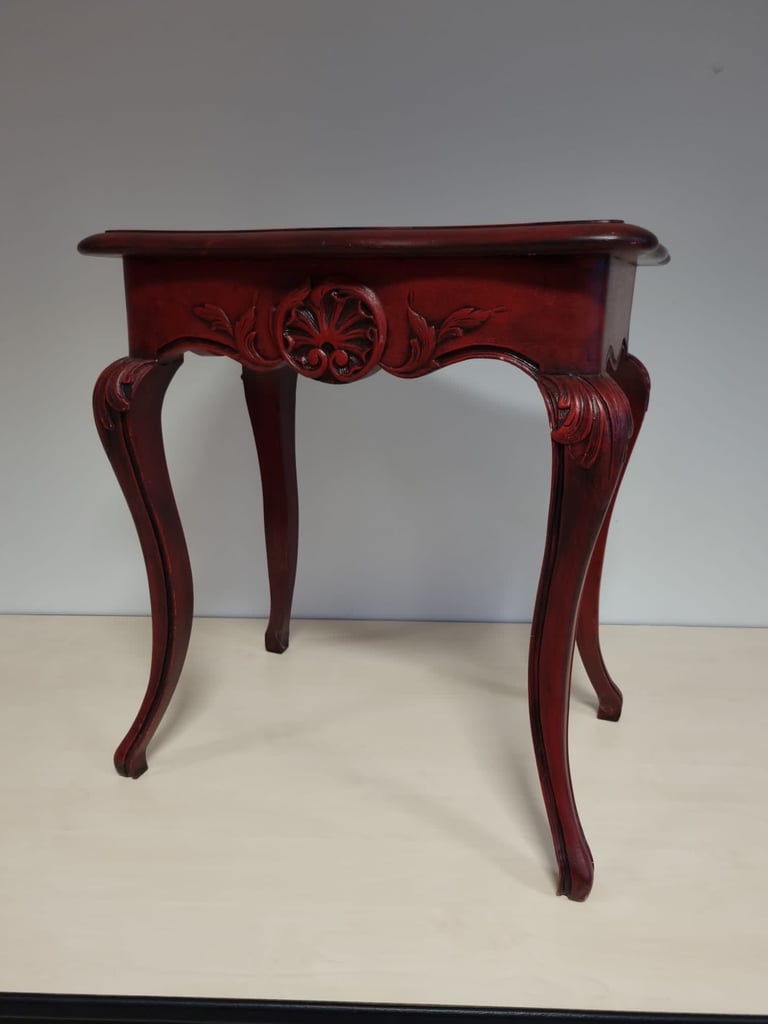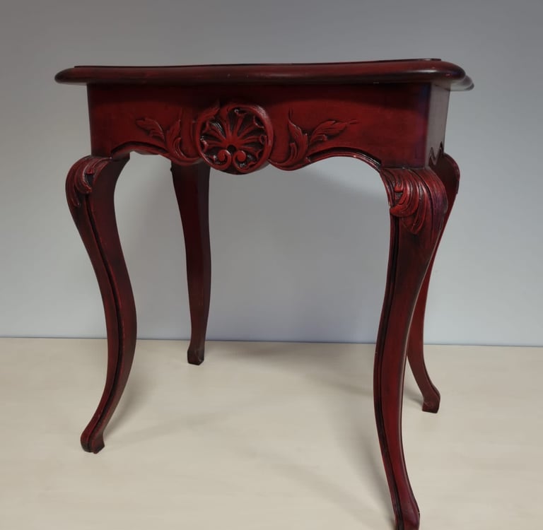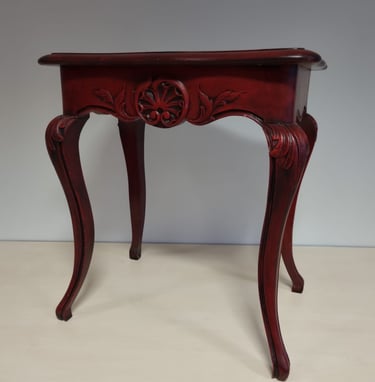 Table cabaret peinte en rouge et patinée au chiffon en noir