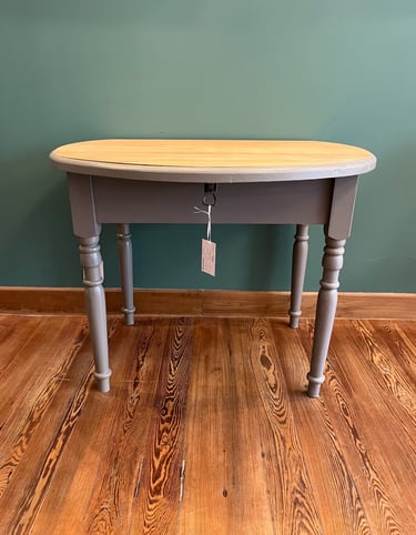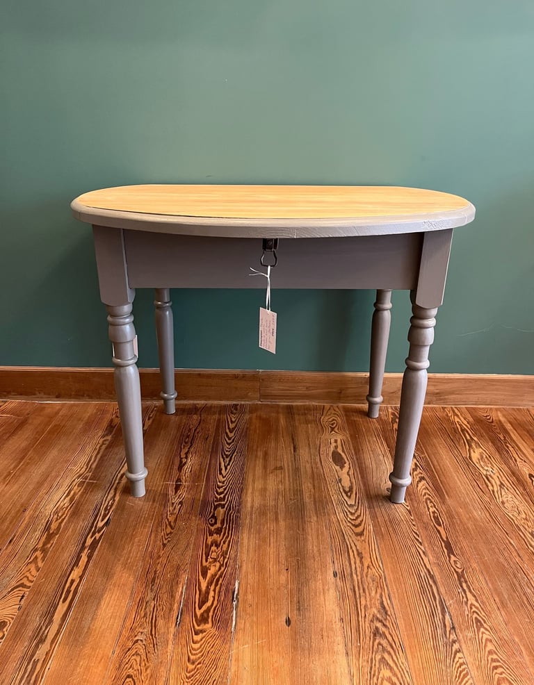 Table à volets peinte en gris crée à la caséine, le plateau a été poncé et huilé